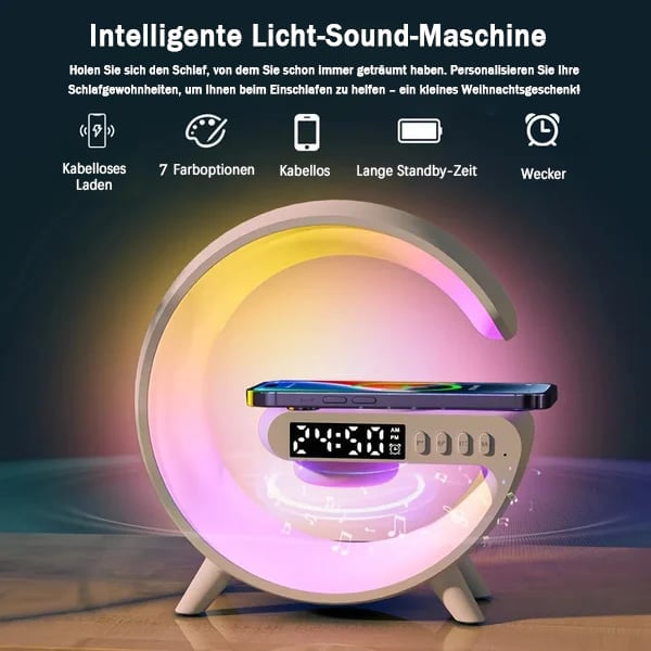 🔥⏰Multifunktionales kabelloses Ladegerät Atmosphärenlampe+Bluetooth-Lautsprecher+Wecker🌟