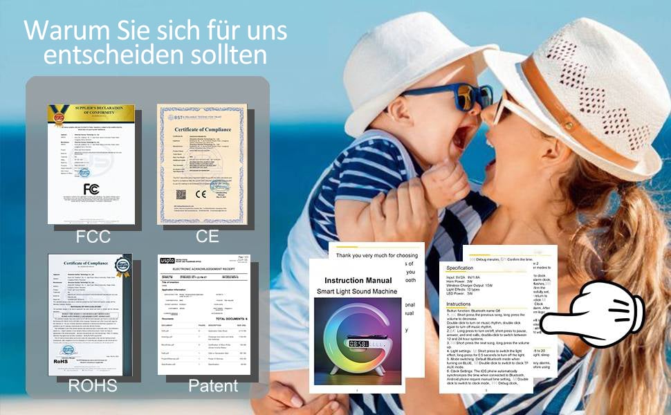 - Funktionen: Bluetooth, TF-Karte, USB-Schnittstelle, Stimmungslicht, Uhr