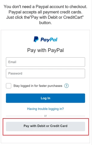 1. Melden Sie sich bei Ihrem PayPal-Konto an oder verwenden Sie Kreditkarte Express.